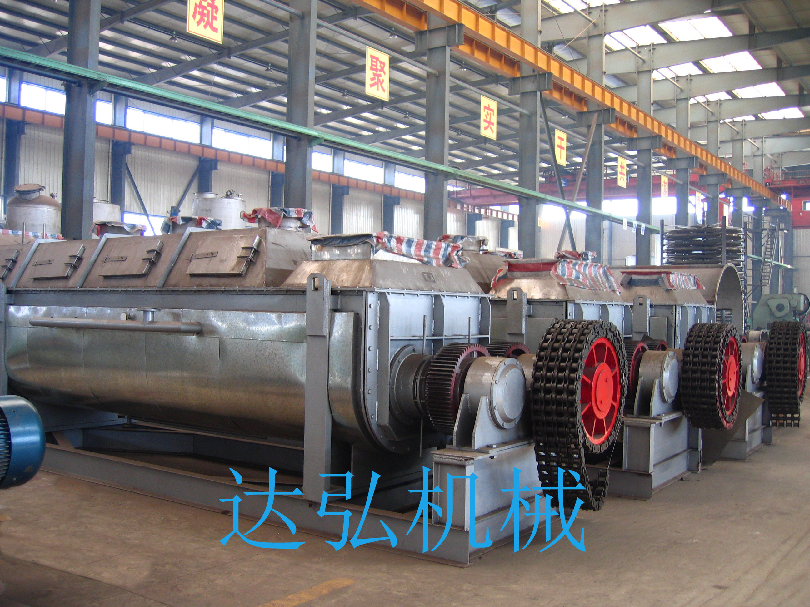 7.干燥机内存料量很高,约为筒体容积的70~80%,单位容积的有效加热面积,远高于一般传导式干燥设备,设备紧凑,体积小,占地面积小。