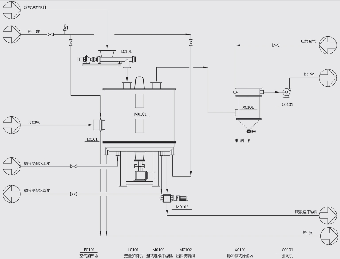 碳酸锂干燥系统工艺流程图